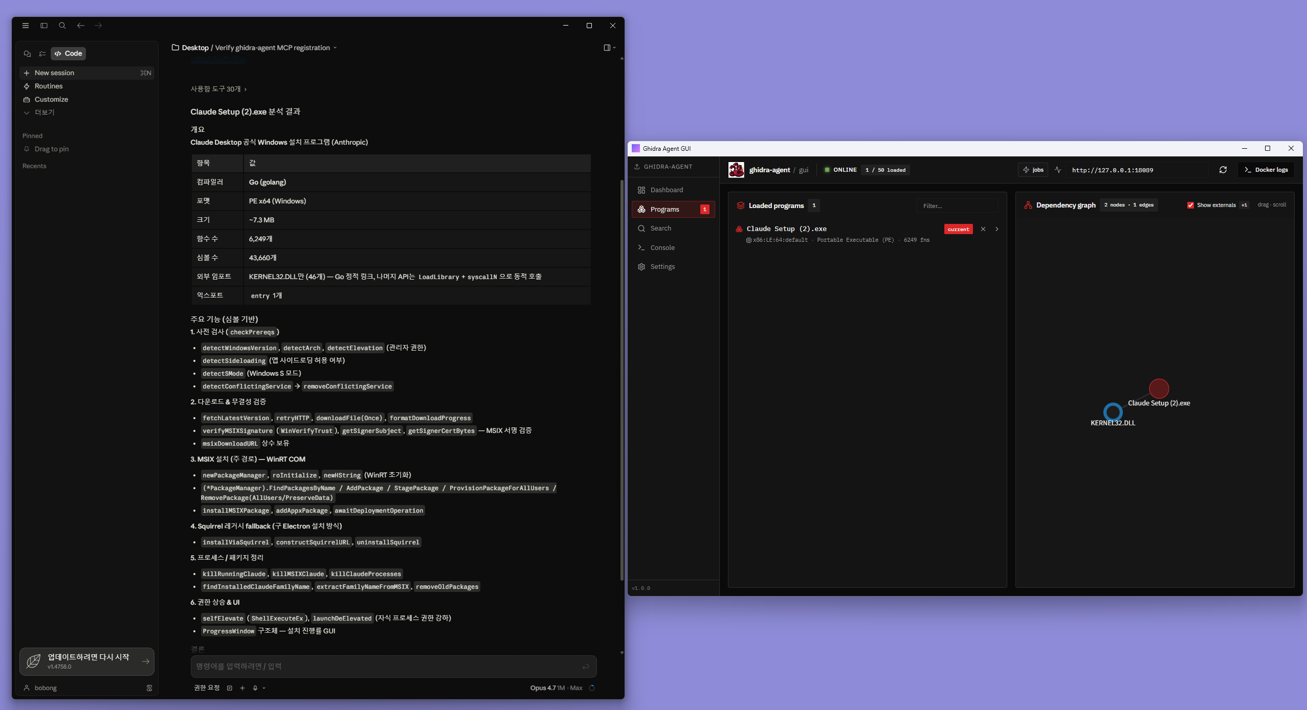 curl+ LLM 세션)를 대체한다. - v1.0.1은 GUI는 그대로 두고 Golang/Kaiju 확장을 번들해 Go·C++ 바이너리에서 GUI에 올라오는 함수·심볼의 질을 보강했다.